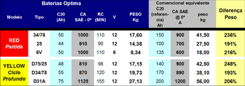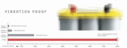 Nas OPTIMA, com a exclusiva tecnologia Spiralcell®, as placas são enroladas firmemente, comprimidas dentro de cilindros, e conectadas com placas de chumbo puro que cobrem 50% de cada célula. Resultado: não tem nada que possa vibrar, bater ou desmanchar. Uma OPTIMA não se importa com a firmeza da sua suspensão !